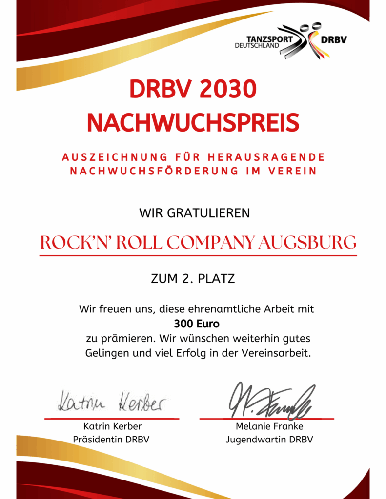 Das ist für uns Ansporn pur, weiterhin alles für unsere Jugend zu geben und gemeinsam mit euch die Zukunft der Augsburger Rock’n’Roll Company zu gestalten.